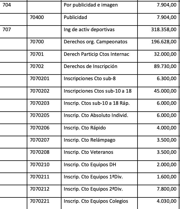 En los ingresos de la FEDA podemos ver el contraste entre los ingresos por publicidad (no llegan a 8.000 euros/año) y lo que se recauda con la organización de los campeonatos oficiales de edades.