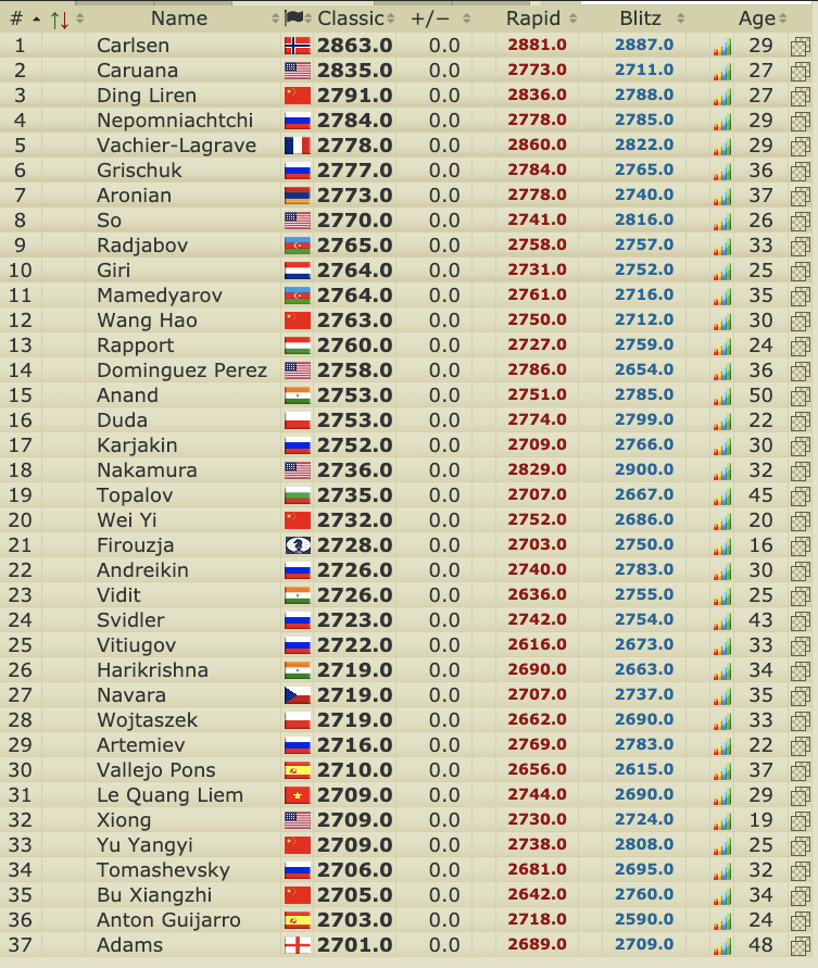 Hoy, Vallejo y Antón, con mucho más ELO (más de 2700), están más abajo en la clasificación (30 y 36).