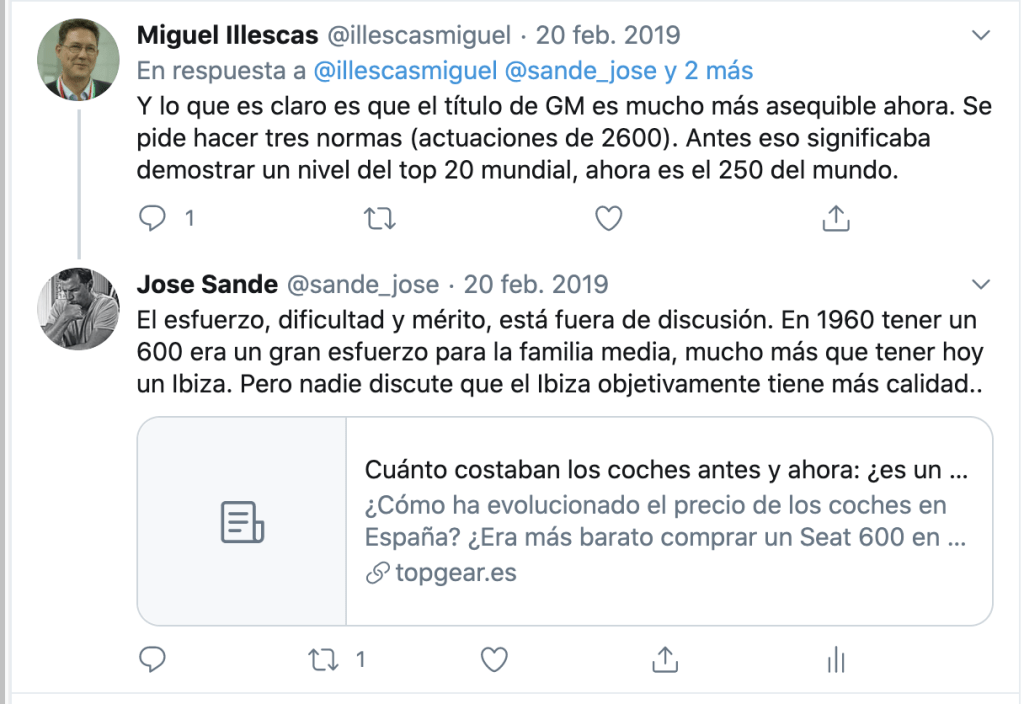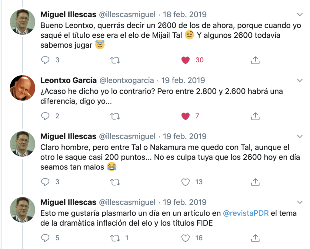 Illescas quiso hacer mención a la diferencia de un 2600 de antes…con los de ahora…aludiendo a la «dramática inflación del ELO».