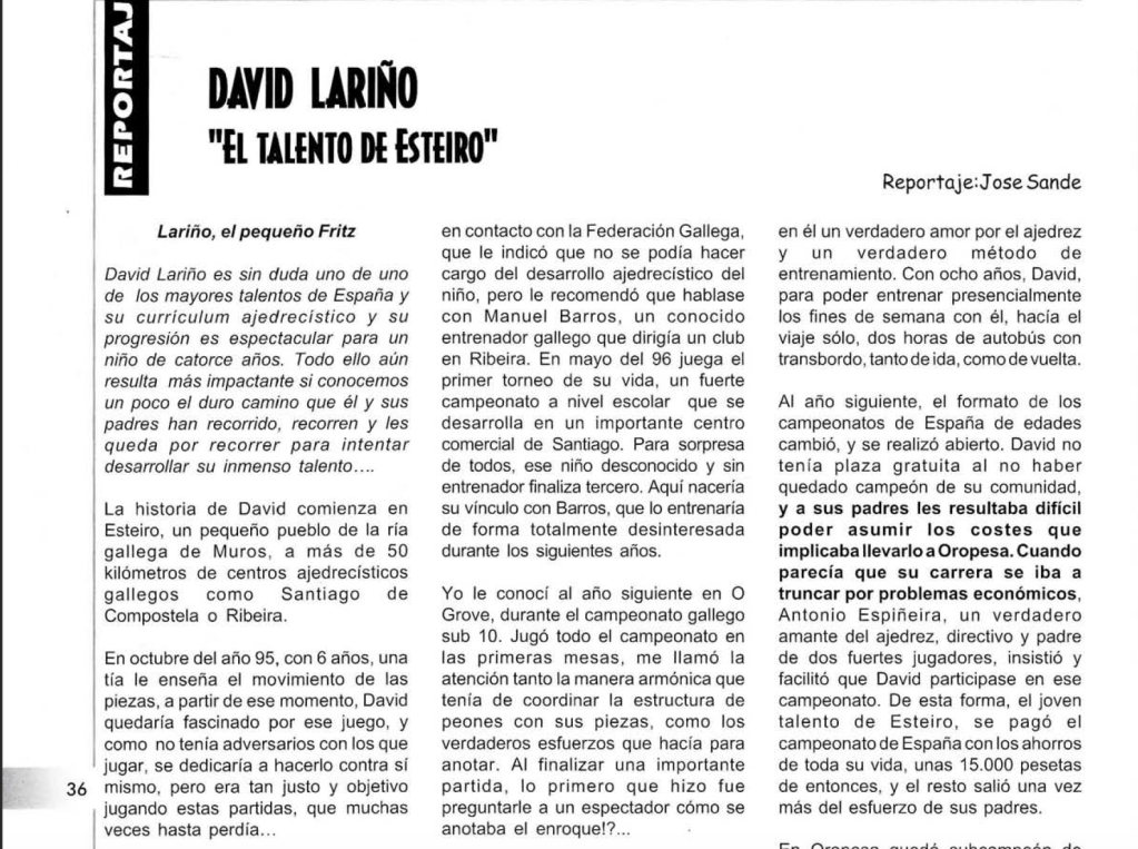 En 2003 escribí en Jaque, un artículo sobres sus orígenes, cuando acababa de ser campeón de España sub14.