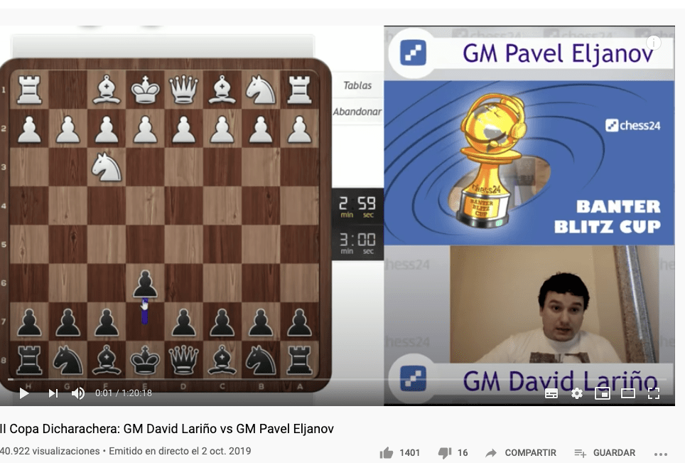 Magnus hacía referencia a la victoria de David Lariño sobre Eljanov, jugador que estuvo en la élite mundial (alcanzó los 2765 de ELO en 2016). 1 hora y 20 minutos de comentarios en directo que no te puedes perder si no lo has visto.