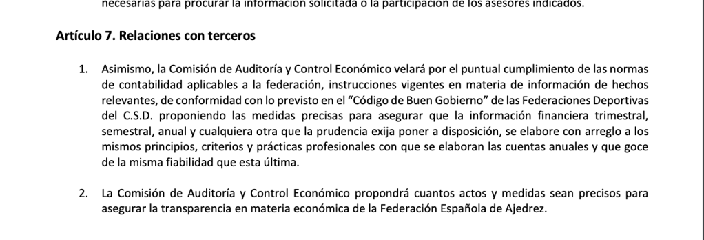 Como comentario personal, si yo administro el ELO no querría estar en la Junta Directiva… y si estoy en la Junta Directiva no cobraría por administrar el ELO… Otra cosa es una traducción concreta de un reglamento, aunque si yo estuviera en la Junta Directiva, también eludiría el encargo. Porque el «Buen Gobierno» implica que «La mujer del César no solo debe ser honrada, sino parecerlo». Pero entiendo que puede ser una opinión personal mía, han decidido hacerlo, cobrarlo, y lo han recogido cumpliendo la norma del CSD, por lo que han cumplido con el requisito del CSD.
