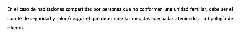 En las habitaciones, un punto importante es qué pasa cuando se comparte por personas que no son de la misma unidad familiar