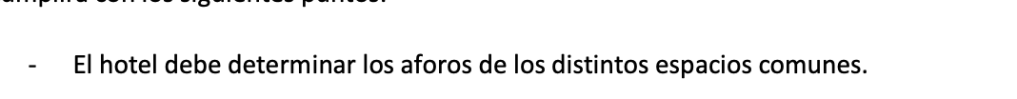 Es decir, parece que las familias deambularán como «islas» por el hotel, teniendo cuidado de no acercarse a metro y medio de otra familia. El hotel debería vigilar que esto se cumple en todo momento. Se insiste mucho en este punto: