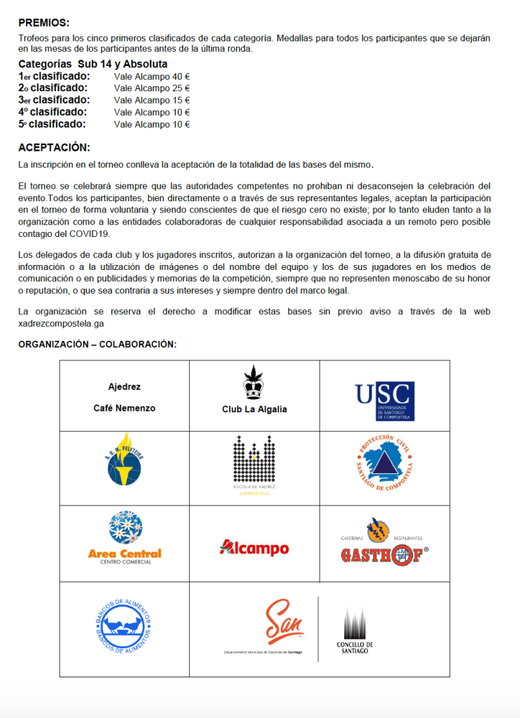 Torneo solidario 4 septiembre en Santiago 10 julio, 202016 julio, 2020 Jose Sande Diego Espiñeira me envía las nuevas bases del torneo: Descargar bases Compártelo: Haz clic para compartir en X (Se abre en una ventana nueva) X Haz clic para compartir en Facebook (Se abre en una ventana nueva) Facebook Me gusta Cargando... Relacionado Publicado por Jose Sande Jose Sande Soy profesor de Economía en IES y de Economía de la Empresa en la Universidad Oberta de Cataluña (www.uoc.edu). Docente, preparador de opositores, autor, editor, ajedrecista y sabinero. Ver todas las entradas de Jose Sande Compártelo: Haz clic para compartir en X (Se abre en una ventana nueva) X Haz clic para compartir en Facebook (Se abre en una ventana nueva) Facebook Me gusta Cargando...