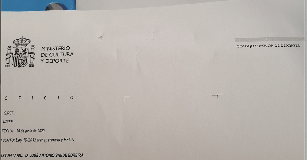 Acabo de llegar a casa y me he encontrado en el buzón la contestación al CSD sobre mis dudas de si la FEDA está sujeta a la Ley de Transparencia, de si debe cumplir la Ley de Contratos del Sector Público (Convenio Hotel Salobreña) y si debe responder a las dudas de sus federados sobre su cumplimiento.
