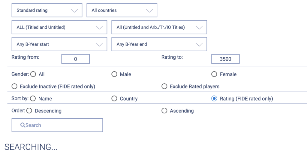 Al poner en el buscador el número total de jugadores..se ha quedado colgado «buscando..», no sé si por el gran número de búsqueda…o porque hoy es fin de mes y la lista tiene algún problema.