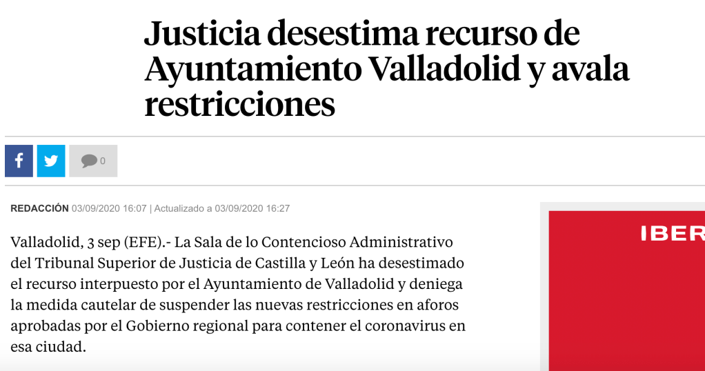 El Ayuntamiento de Valladolid recurrió las restricciones y hoy la Sala de lo Contencioso Administrativo del Tribunal Superior de Justicia de Castilla y León ha desestimado el recurso.
