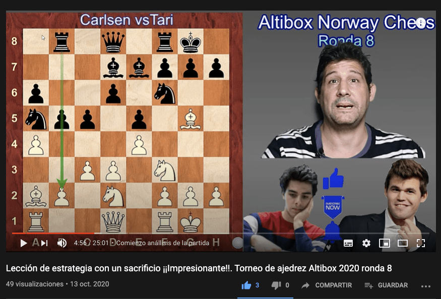Pues hoy me he encontrado esta partida comentada en un canal que no conocía, Estudia ajedrez del MF Rubén Ceñal.