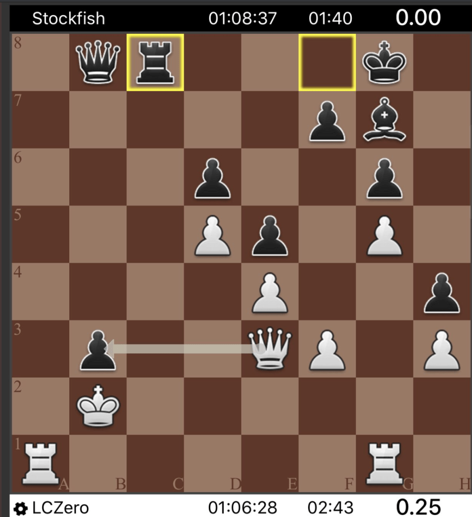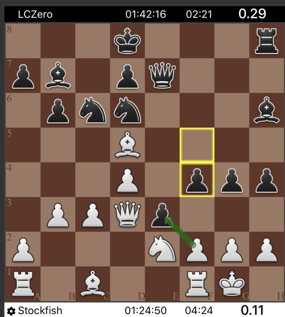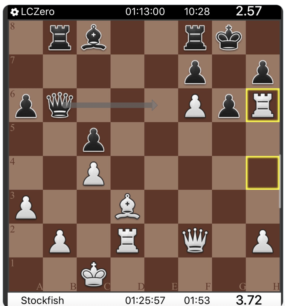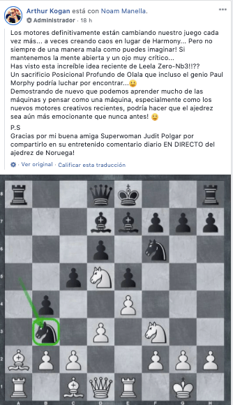 Estos día leía en el grupo de Facebook OLALACHESS el profundo sacrificio posicional del módulo Leela: Cb3! para congestionar el flanco de dama blanco!