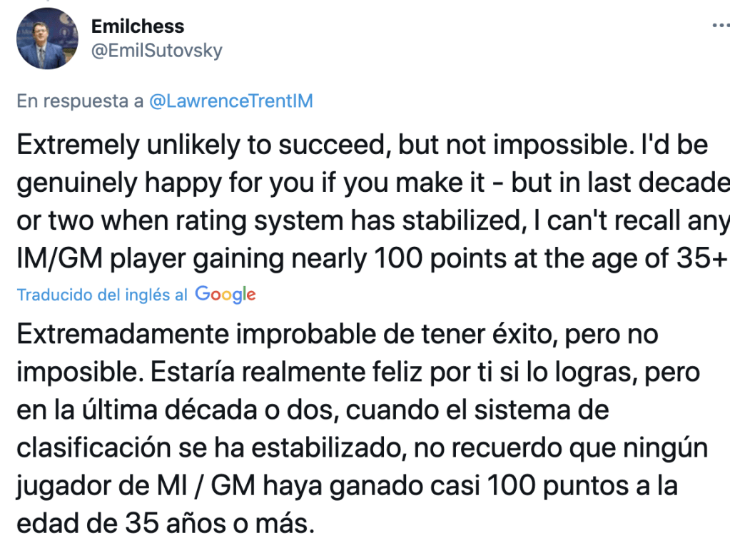 Emil Sutovsky comenta que no conoce ningún jugador de más de 35 años que haya subido 100 puntos.