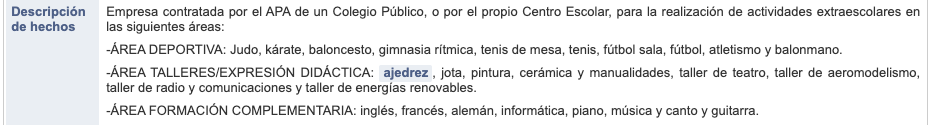Una persona física imparte clases de ajedrez a particulares y también en diversos colegios y varias federaciones. A estos efectos, manifiesta la inclusión del ajedrez en planes de estudios oficiales como en Galicia, DOG nº 136 de 21-7-2015, y Resolución de 18-1-2013 del Consejo superior de deportes (BOE del 7 febrero).