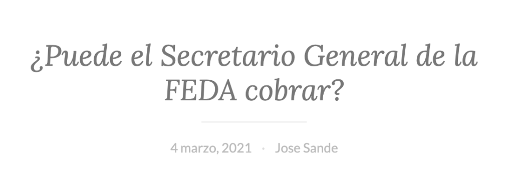 El 4 de marzo escribí un post en el que comentaba que el Secretario FEDA no puede tener sueldo si está en la Junta directiva (que entonces se estaría poniendo el sueldo a sí mismo…lo que no es legal…).