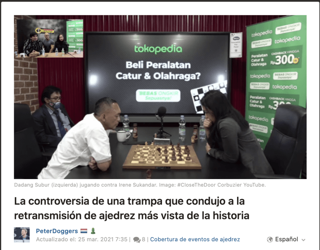 Chess.com relata cómo un duelo amistoso entre la MI Irene Sukandar y Dadang Subur, un aficionado acusado de trampas online ha roto todos los récords de retransmisión de ajedrez.