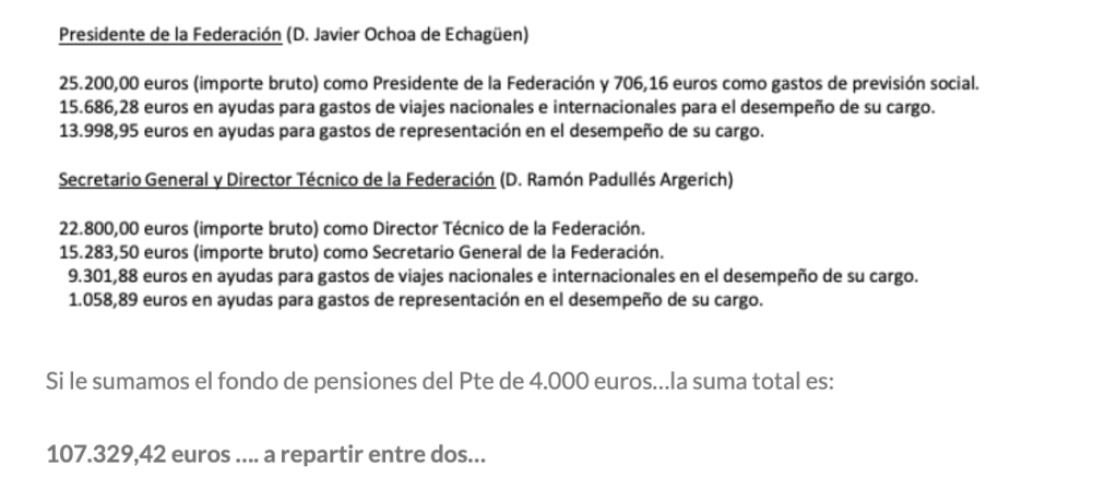 Está claro que cada vez hay más personas en la FEDA que no están tranquilas con la gestión de la Alta Dirección (Presidente más Secretario), que son los que cobran más de 107.000 euros. Mucho riesgo repartido y el grueso del dinero en pocas manos.