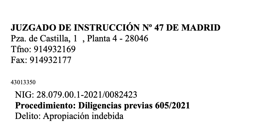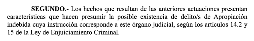 Me llega información de que ha sido admitida a trámite una querella por la vía Penal por la «posible existencia de un delito de Apropiación indebida».
