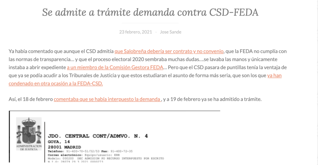 Como siempre, total respeto a la presunción de inocencia de los investigados, pero realmente es una pena que la FEDA haya llegado a estos extremos (ser investigada por la vía penal por presunta Apropiación indebida), por su falta de transparencia y nefasta política comunicativa.