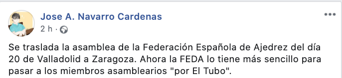 En los últimos días estoy constatando que cada vez más ajedrecistas no tienen miedo de expresar opiniones críticas en redes sociales, y eso es el primer paso para que la FEDA se vuelva más transparente, comunicativa, eficiente y democrática.