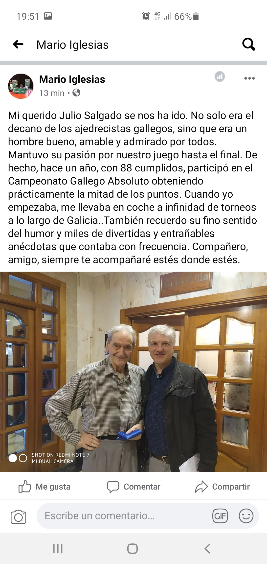 Me acabo de enterar por Mario Iglesias que nos ha dejado Julio Salgado. Personalmente lo conocía poco, pero las veces que hablé con él siempre me pareció una gran persona y un ejemplo de longevidad deportiva.