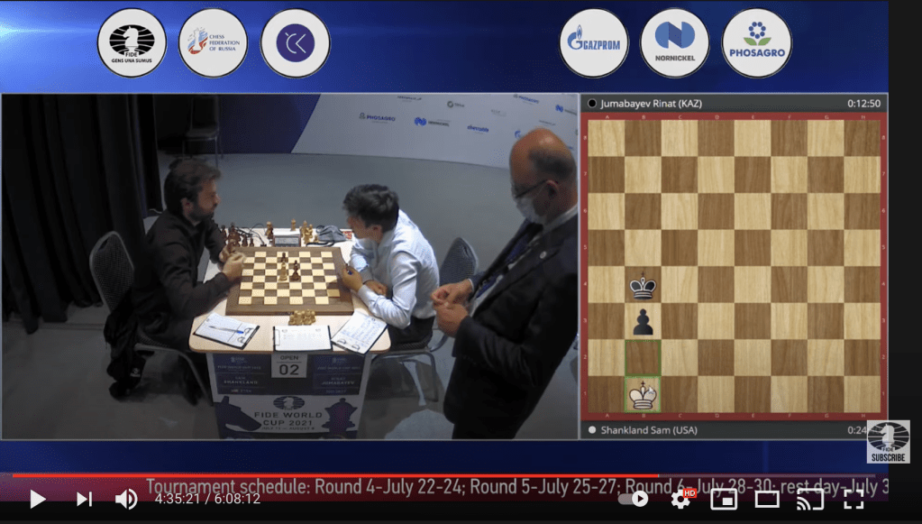 Hoy en la retransmisión de la Copa del Mundo, Nigel Short defendió que la regla de ahogado no tiene sentido. El rey será «matado» y no debería ser tablas.