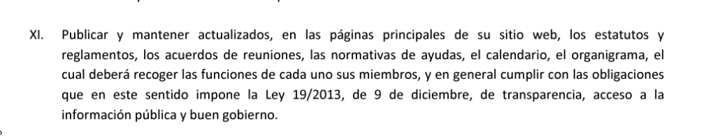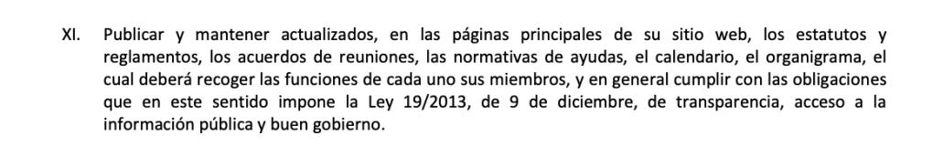 Y en las bases de las convocatorias 2016-2021, vemos claramente que hay como condición haber publicado y actualizado los acuerdos de las reuniones los órganos de gobierno, el organigrama con las funciones de sus miembros, etc..