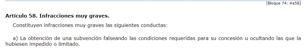 «El artículo 308 del Código Penal castiga al que obtenga subvenciones o ayudas de las Administraciones Públicas, incluida la Unión Europea, en una cantidad o por un valor superior a 100.000 euros falseando las condiciones requeridas para su concesión u ocultando las que la hubiesen impedido.