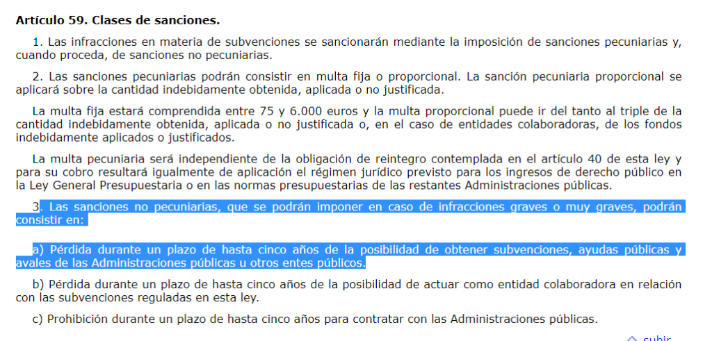La normativa de la Convocatoria de ayudas es clara, si no se cumplen los requisitos, se sanciona y se puede pedir el reintegro.