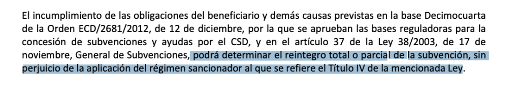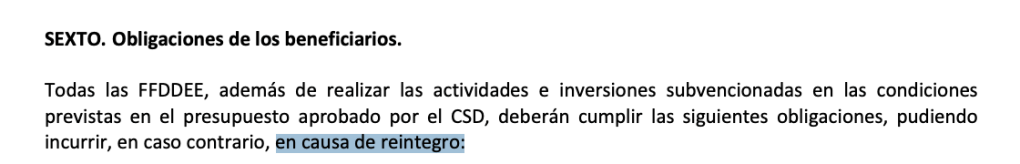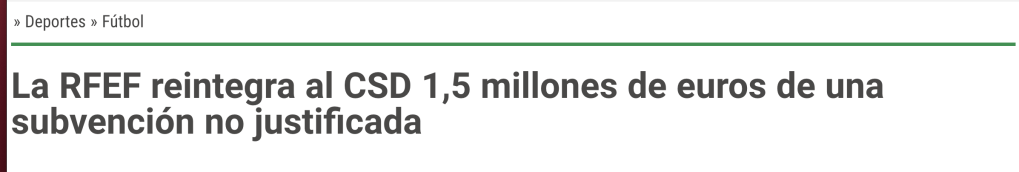 Parece que el CSD ya está investigando estos hechos. Si el CSD determina el reintegro, además del problema económico para la FEDA (devolver más de un millón de euros), tenemos:
