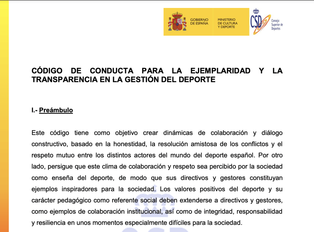 Además de cumplir el código de Buen Gobierno del CSD… informando de todos los contratos, no solo de los subvencionados…
