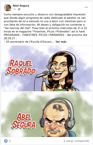 Repitiendo este falso argumento está faltando al respeto de los federados catalanes. Es una deformación profesional comprensible en un abogado, defender cualquier postura a cualquier precio. Pero la entrevista no es como abogado defensor de los investigados, sino como Presidente de la Federación catalana. No debe usar argumentos falaces. Habla de responsabilidades y no de cargos, pues su responsabilidad es defender al AJEDREZ catalán y español, no a los investigados por supuesta apropiación indebida. Si el juez dictamina que son inocentes y no hay causa… mejor por sus amigos… pero mientras tanto debe defender de forma imparcial el ajedrez catalán y español desde sus cargos institucionales. Realmente se le ha ido la olla en este asunto y ha perdido cualquier atisbo de objetividad.
